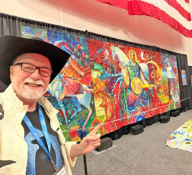 Відкриття виставки відвідав консул України в Г’юстоні Віталій ТАРАСЮК і назвав цей шедевр «потужним актом культурної дипломатії, який передає світу послання миру, гідності й незламності українців навіть у час війни». У захваті від «Мамая» залишився і найвідоміший у світі популяризатор клаптикового шиття, музикант Рікі ТІМС (на фото) – він зробив селфі саме біля українського твору. Після закінчення фестивалю робота помандрує в турне ще по п’яти містах у Штатах. Метою туру є збирання коштів на операції нашим військовим, які зазнали поранень в обличчя.