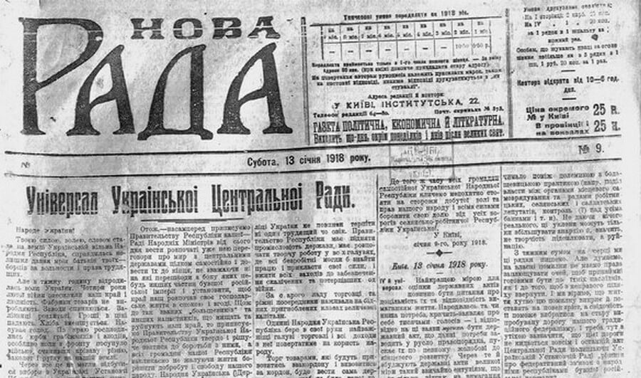 (газета «Нова Рада», №15 від 22 січня 1919 р.)