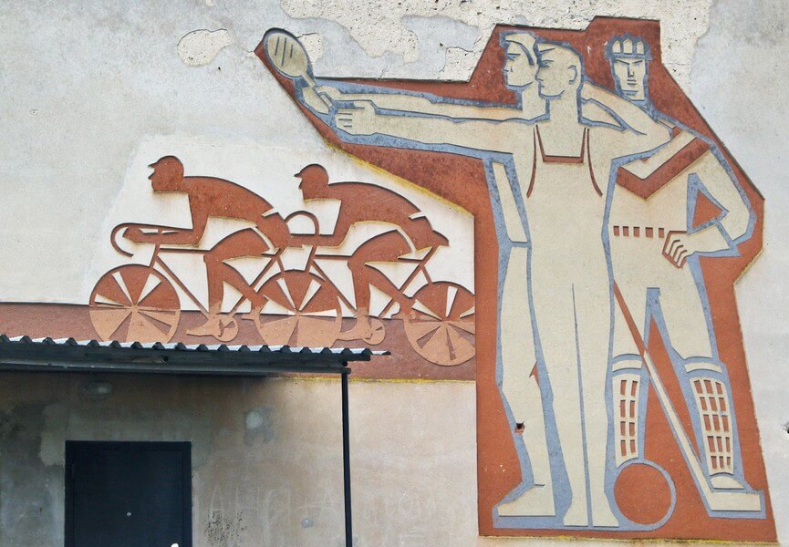 1. Мозаїка на тему Київської Русі та сграфіто на спортивні теми – колишній клуб цукрового заводу, вул.Володимира Великого, 15. Автор невідомий.