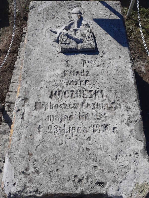 На відреставрованому в Зіньківцях надгробку чітко читається напис польською: там лежить римо-католицький священник Йозеф МОЧУЛЬСЬКИЙ, пробощ Орининський, який помер у 54 роки 23 липня 1895 р.