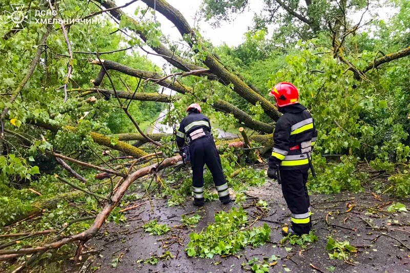 Фахівці Служби порятунку зрізали і розчистили 15 дерев, що впали на проїжджу частину доріг та пішохідних тротуарів. Найбільше від негоди постраждали Кам’янець-Подільська, Дунаєвецька, Новодунаєвецька, Деражнянська і Городоцька територіальні громади. Крім того, роботи з ліквідації наслідків негоди проводилися в містах Хмельницький і Кам’янець-Подільський. Постраждалих немає.