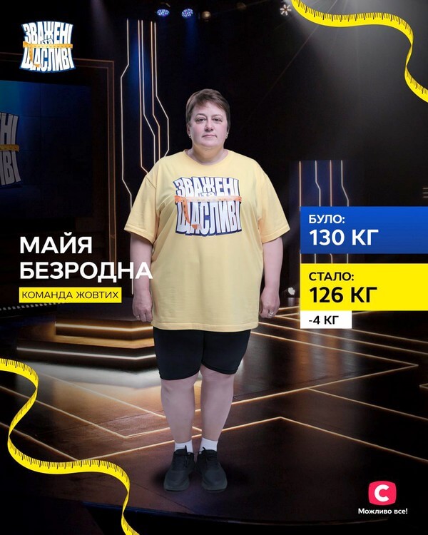 Серед учасників – директорка Китайгородського ліцею ім.Ольги Борейко Майя БЕЗРОДНА, яка стала найстаршою учасницею сезону. У команді тренерки Марини БОРЖЕМСЬКОЇ пані Майя розпочала свій шлях із вагою 130 кг.