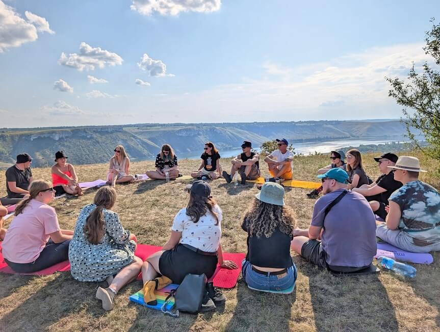 – Після того, як переселенці виїхали з хабу, ми продовжили нашу діяльність. Основне – це надавати місце, час і простір для різних аудиторій для їхнього відновлення та ретритів. Наразі наш простір працює як місце для молодіжних таборів, ветеранських, реабілітаційних таборів для військових, для мистецьких резиденцій. Адже нині важко знайти окремі місця, де було б тихо, де не було б сирен, тривог, не літали ракети. Але нашому регіону пощастило, тут відносно спокійно і тихо. Ми створюємо реабілітаційні табори з психологами, арттерапевтами, в рамках яких люди приїжджають до нас на декілька днів, щоб відновити сили, поговорити з психологами, побути у своєму середовищі разом з іншими людьми, помилуватися краєвидами, піти в походи, прогулянки, поплавати на Дністрі. Все це дуже стабілізує психологічний і емоційний стан людей, які приїжджають. І ми наразі бачимо таку велику потребу серед військових і ветеранів після того, як почали проводити табори в такому форматі. І це один із наших основних напрямів.