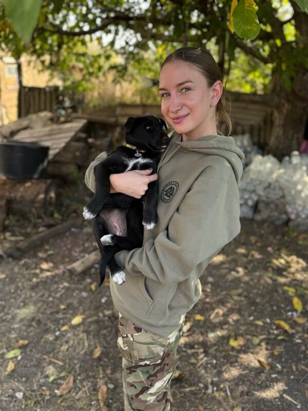 – Найбільший мій антистрес – це собака. Її знайшли хлопці на харківському напрямку і подарували мені на день народження. Взяли, зав’язали бантик, принесли і кажуть: «Це тобі подарунок!». Я їм: «Та ви що, серйозно? Це ж я тепер відповідальна на все життя». Так у мене з’явилася Терра. Вона пройшла зі мною всю ротацію. І хоч мала масу своїх пригод – то лапу поріже, то ще щось утне, ми з усім впоралися. Вона не лякається вибухів, сирен, така справжня бойова собака. Нині живе зі мною вдома, спить на ліжку. Весела, грайлива. Коли я повертаюся після служби, ми разом гуляємо, готуємо, відпочиваємо.