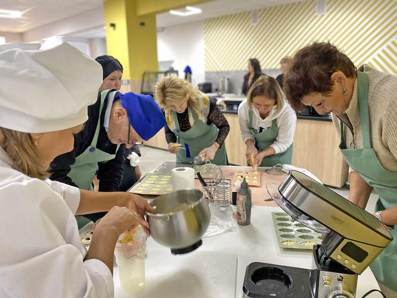 А першими учасниками кулінарного майстеркласу в школі стали освітяни Кам’янця-Подільського. Разом вони не лише говорили про сучасну освіту і перспективи професії кухаря, а й готували під керівництвом відомої шефині, учасниці проєкту «Мастер Шеф» Лілії СОРОКІНОЇ. Спробували свої сили в кулінарії вже й школярі, які цілим класом прийшли на майстерклас із виготовлення бенто-тортиків.