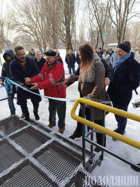 Дворічний задум, 9-місячна реалізація, зусилля багатьох людей, допомога іноземних партнерів – і 13 січня президент Червоного Хреста України Микола ПОЛІЩУК у Кам’янці-Подільському перерізає стрічку новоствореного Центру протезування! Допомогли йому в цьому представниця Червоного Хреста Греції Талія ФОРМОЗА та Массімо ТУЛІН – один з італійських партнерів проєкту відновлення сил і нових можливостей.